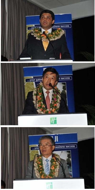 韩志强大使指出,斐济是第一个与中国建交的太平洋岛国,中斐建交36年来,两国友好关系得到不断巩固和加强。中国生产力发达,市场规模庞大,资金技术雄厚;斐济的旅游业、农业、渔业、林业和矿产资源条件良好,并且是太平洋岛国地区的“枢纽”。两国贸易投资合作潜力巨大。韩大使强调,实行改革、促进发展,实现稳定和繁荣是中斐两国面临的相同任务,中斐友好合作的不断加强,不仅将给两国人民带来重要利益,也必将对本地区的稳定与繁荣做出重要贡献。